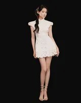 写真中,关晓彤的旗袍造型尤为吸睛。她所穿着的并非传统长款旗袍,而是经过现代审美改良的短款设计。经典的立领盘扣元素保留了旗袍的灵魂,勾勒出其优美的颈部线条,彰显出东方女性特有的端庄。而无袖与高腰短裙的剪裁,则大胆打破了传统款式的拘谨,赋予整体造型以青春的灵动与活力。旗袍面料上的印花清雅秀丽,与一旁色彩明艳的樱桃、蜜桃等水果相映成趣,构成了一幅视觉上极为和谐的画卷。