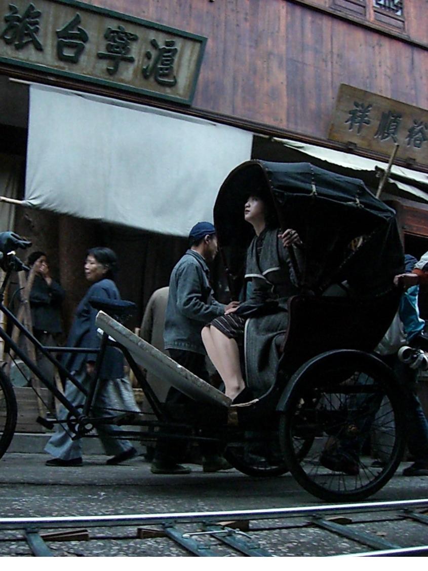 照片中,汤唯的身影出现在上海重庆公寓的旧景里。她或身着淡蓝色风衣与渔夫帽,在淅淅沥沥的人造雨景中反复步入公寓门廊;或在拍摄间隙扶着楼梯扶手,笑得弯下了腰。这些瞬间剥离了电影的沉重叙事,展现了一个年轻演员在高压创作下的鲜活与生动。为了精准捕捉上世纪40年代的神韵,汤唯接受了长达八个月的魔鬼训练,从穿旗袍顶书行走的仪态,到学习苏州评弹与上海口音,每一处细节都力求完美。李安导演的严格是出了名的,一个下车、上楼的简单镜头,可能需要反复拍摄六次才能通过。正是在这种近乎苛刻的雕琢下,“王佳芝”才从历史尘埃中走了出来,有了呼吸与血肉。