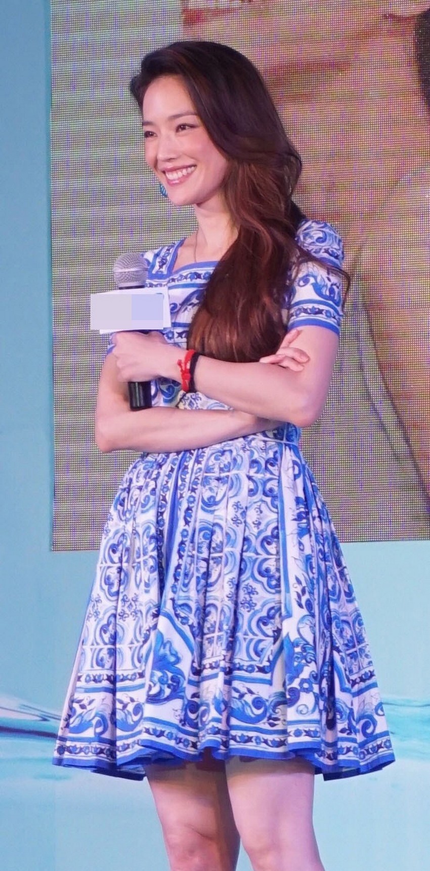 舒淇自身的气质,与这身青花瓷裙达成了天作之合。她身上有一种与生俱来的慵懒与洒脱,这是极具现代感的时尚标签。然而,当她与这充满古典韵味的纹样相遇时,却产生了奇妙的化学反应。她的眼神中透露着从容与自信,这与青花瓷纹所散发的静谧、高雅气息相互交融,仿佛完成了一场跨越千年的对话。这种融合并非简单的叠加,而是塑造出了一种独属于舒淇的复合魅力:既有前沿的时尚感知力,又蕴含着深厚的文化底蕴,让她在众星云集的场合中,瞬间成为不容置疑的焦点。