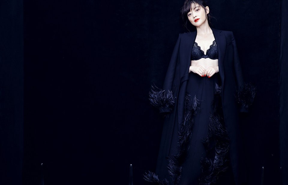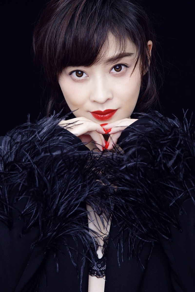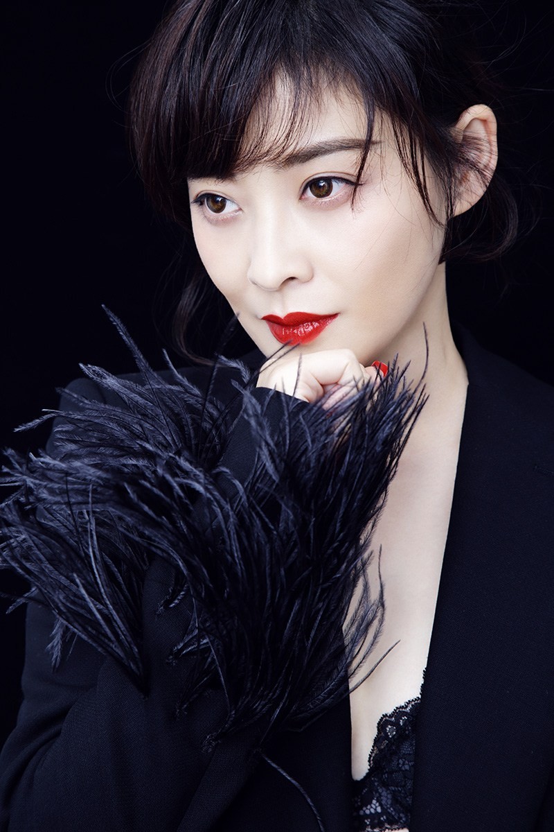 写真整体以深邃的色调为背景,强调光与影的强烈对比,烘托出浓郁的艺术氛围。梅婷身着设计感十足的服饰,或为简约利落的黑色裙装,或为质感高级的丝绒礼服,每一套造型都与其气质完美契合。其中最引人注目的,莫过于她标志性的红唇妆容,那一抹饱满浓郁的朱砂红,并非单纯的色彩点缀,而是化作了整组写真的灵魂——它既是视觉的焦点,也象征着她内在的热烈、果敢与不羁。红唇与凝脂般的肌肤形成鲜明对比,瞬间点亮了整个画面,也精准传递出她“霸气”而不失优雅的状态。