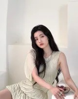 “纯”在于那份毫无攻击性的亲切感与自然状态。照片中,她没有过度修饰的妆容,发型随意而慵懒,或身着柔软的针织衫,或搭配简约的吊带裙,置身于熟悉的居家环境里。她的表情时而温柔浅笑,时而眼神放空陷入沉思,这种松弛感打破了明星与观众之间的距离,仿佛一位邻家女孩的日常记录,传递出一种安静、治愈的氛围。这种自然美的呈现,与她之前在社交平台分享的“雨天日记”写真异曲同工,那组在细雨中以白裙、透明伞和百合花营造的画面,同样主打一种不事雕琢的清新与生活气息。