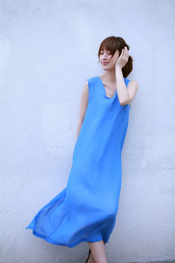 蓝色,作为这组照片的灵魂色彩,被赋予了多重的表达。它时而如天空般清澈明朗,映衬着张俪干净的笑容;时而又如深海般静谧沉稳,与她偶尔流露的沉思神情相得益彰。这种色彩的选择,不仅视觉上降温,更在心理层面传递出一种自由、宁静而又充满生命力的夏日情绪。