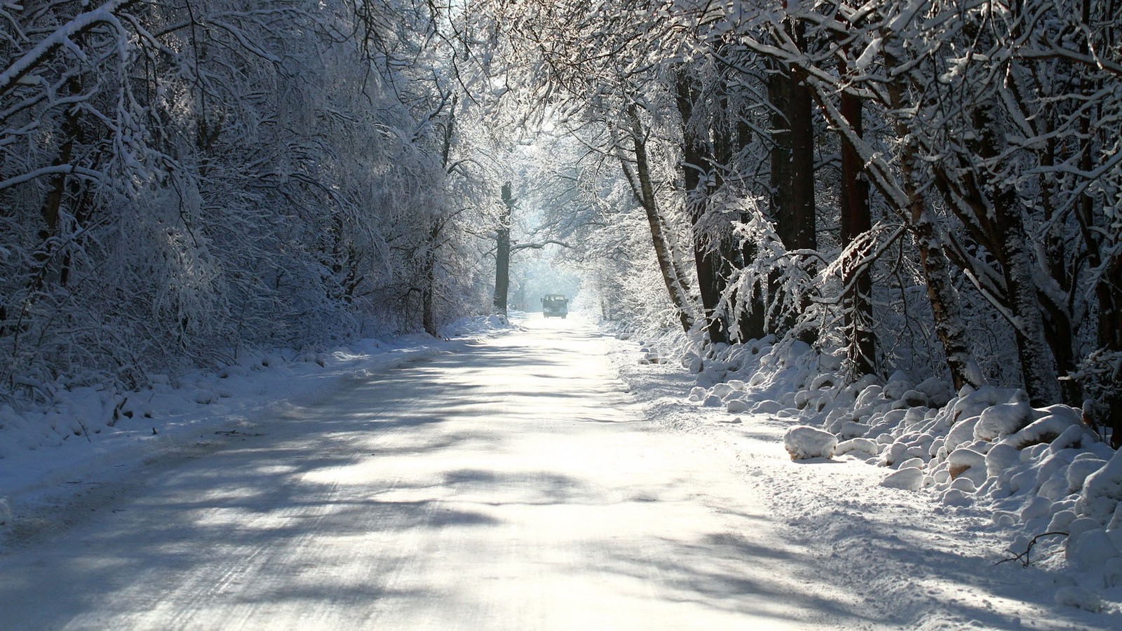 凝视这张壁纸,首先攫住人心的是一份深沉的静谧。一条蜿蜒的公路向视野尽头延伸,路面积雪平整,仿佛自入冬以来就未曾被打扰。两侧的树木披挂着厚重的白雪,枝桠低垂,形成了天然的冰雪拱廊。光线是清冷的,或许是清晨,又或是雪后初霁的黄昏,给整个世界蒙上了一层淡蓝的灰调。这里没有车辙,没有足迹,只有纯粹的自然与一条静静等待的道路。这种极致的安静并非空洞,它仿佛具有形状与质量,充盈着整个空间,让观看者的呼吸也不自觉地放缓,坠入一个抽离了时间感的冬日梦境。