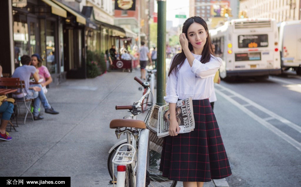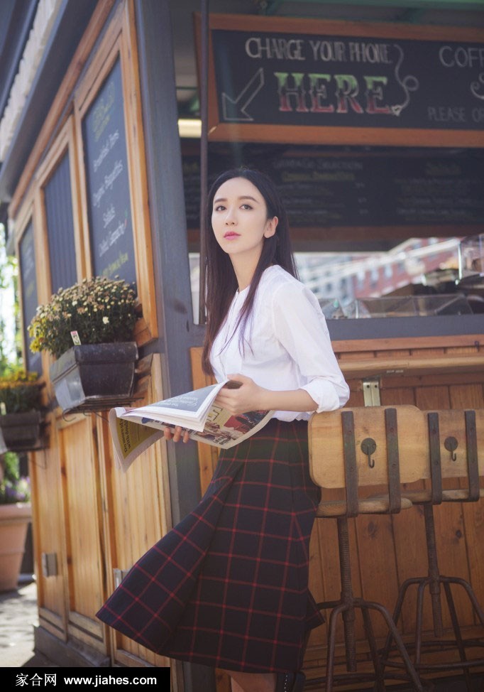 镜头下的娄艺潇,身穿一袭简约的白色衬衫,搭配及膝的格子长裙和经典的黑色牛津鞋,仿佛一位从旧时光中走出的文艺少女。她时而手持报纸漫步,时而驻足凝望,没有夸张的肢体语言,却在撩发、侧望、低头的自然瞬间,流露出大方出众的气质。尤为动人的是她微启的粉唇与温柔的眼眉,在异国街景的映衬下,构成了一幅宁静而美好的画面,与她早年凭借《爱情公寓》中“胡一菲”一角确立的泼辣御姐形象形成了鲜明的对比,展现了演员身份之外的多元魅力。