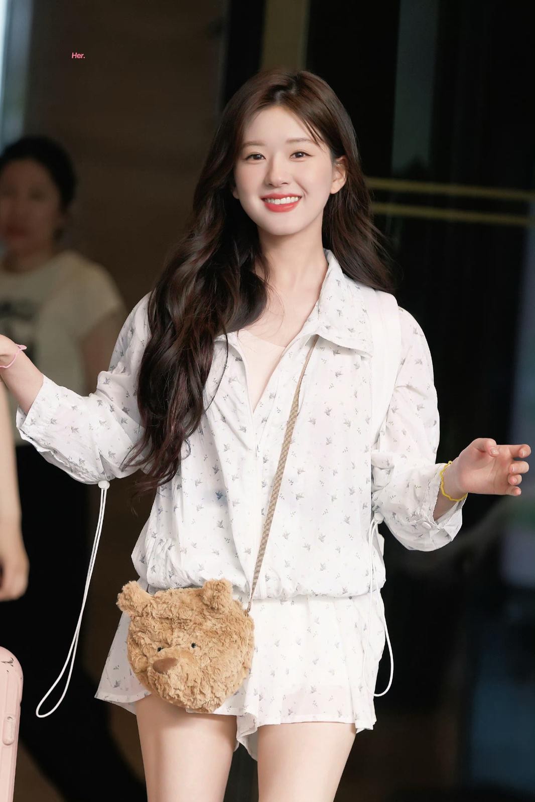 赵露思的穿搭哲学中,“适度露肤”是营造轻盈感与聚焦优势的关键。在这组街拍中,运动短裤的长度恰到好处地展示了她大腿流畅的线条,充满了青春的活力。更值得一提的是,她对于“踝足点睛”的把握:一双简约的浅色运动鞋,大面积露出纤细的脚踝和脚背。这个细节在视觉上极大地延伸了腿部线条,堪称显高显瘦的“隐形武器”。与人们传统印象中干瘪的“筷子腿”不同,赵露思的双腿呈现出一种带有自然肌肉线条的生命力之美,这源于她长期坚持普拉提、瑜伽等运动的自律。这种健康、紧致的美感,与她整体散发出的阳光自信相得益彰,成为了她最具辨识度的魅力点之一。