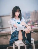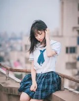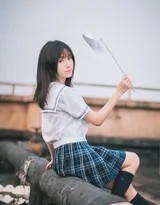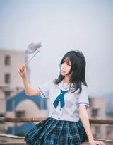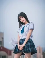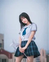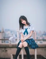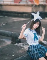 这组写真的主题聚焦于学生制服与纸风车的结合,象征着青涩年华中的简单快乐。学生制服通常代表着秩序与纪律,但在这高台之上,它却转化为一种浪漫的符号,与纸风车的童趣相得益彰。摄影师通过捕捉少女的自然表情,展现了她在风中的灵动瞬间——或许是在回忆童年的游戏,或许是在憧憬未来的梦想。天台的环境选择也极具深意:高处俯瞰城市,象征着青春期的迷茫与探索,而纸风车的转动则暗示着时间流逝中的美好停留。这种对比强化了照片的情感深度,让观者不禁沉浸于对逝去时光的怀念。