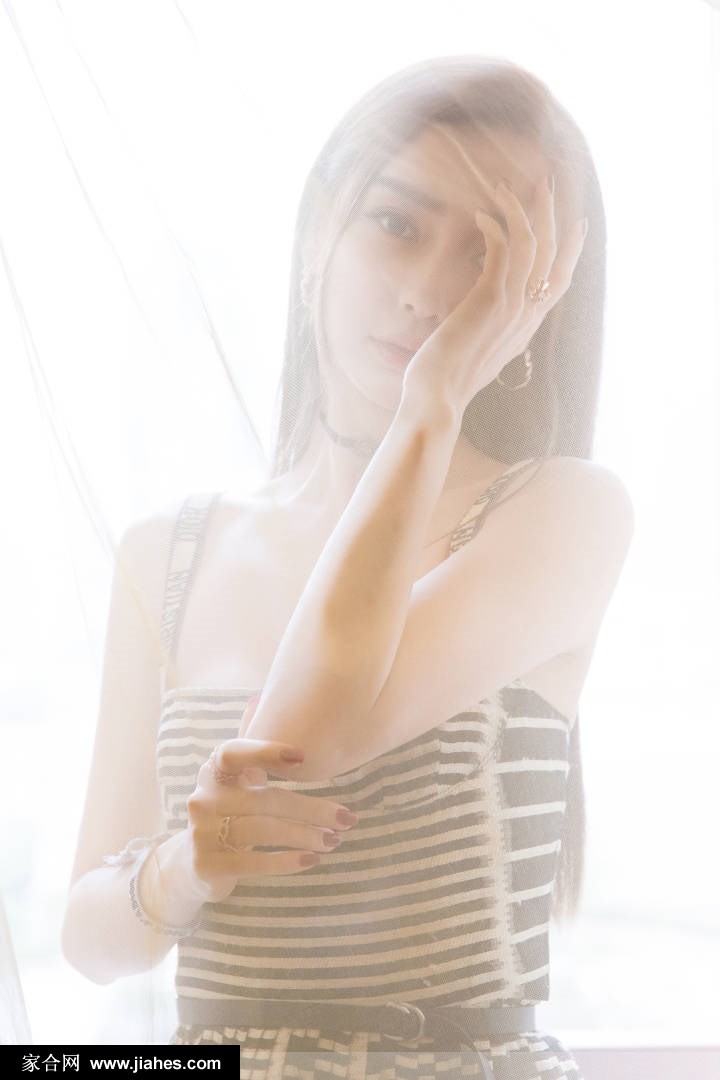 光影的运用在这组作品中堪称精妙。柔和的光线轻轻抚过她的面庞与肩颈,勾勒出精致柔和的轮廓线,又在眼眸与唇畔投下细腻的阴影,增强了画面的层次与质感。在明暗交错间,她的肌肤仿佛被镀上了一层珍珠般的光泽,更衬托出那份不染尘嚣的纯净气质。这份由光影雕琢出的美感,使得“如水灵动”有了具体的形态——那是光在流动,是影在追随,更是她自身气韵在画面中的自然流淌。
