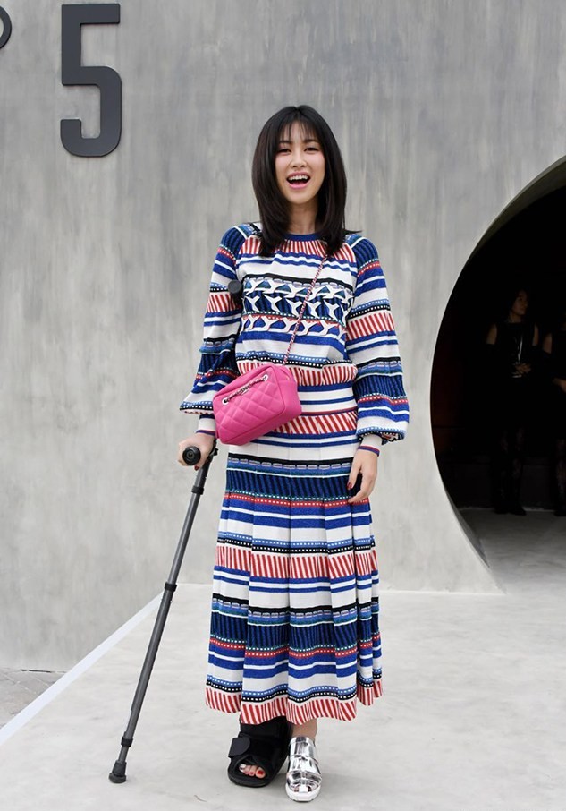 在时尚活动与明星云集的场合,公众习惯于看到精心装扮、完美无瑕的身影。然而,一场某品牌在京举办的高级定制手工坊新品发布会上,女星朱珠的现身却给出了另一种关于“美”与“力量”的生动注脚。彼时,因在竞技真人秀《非凡搭档》录制中意外受伤,她不得不依靠拐杖支撑行走。但当她身着一袭波普纹案民族风长裙,包扎着伤脚却依旧笑靥盈盈地出现在镜头前时,那份清雅与坚定瞬间成为全场焦点,超越了衣香鬓影,传递出震撼人心的敬业精神与生命韧性。