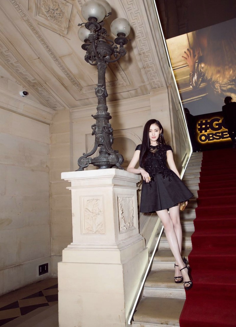 妆容与配饰的搭配更是体现了张天爱及其团队的匠心。为了衬托这一身极致简约的黑裙,她的妆容重点放在了凸显肌肤质感与五官立体度上。底妆清透无瑕,宛如第二层肌肤,与黑色裙装形成鲜明对比,更显肌肤胜雪。眼妆采用大地色系细腻晕染,眼线微微上扬,勾勒出灵动又略带妩媚的眼神。唇色则选择了与欧莱雅品牌调性相符的经典正红,饱满而不过分张扬,瞬间点亮整体造型,成为面部的焦点。配饰方面,她仅佩戴了一对小巧的钻石耳钉和一枚造型简约的戒指,手腕上不见累赘的手镯,指尖丹蔻色与红唇呼应。手中握着的银色金属扣手拿包,线条硬朗,为全身柔软的曲线注入一丝现代摩登的锐度,完成了柔美与力量的平衡。