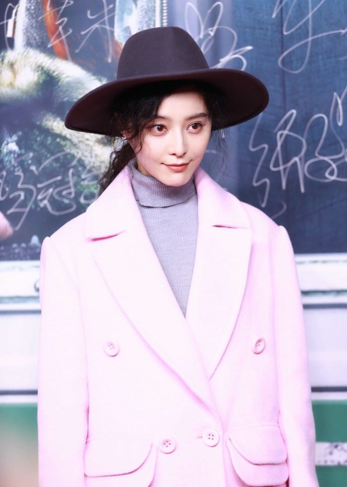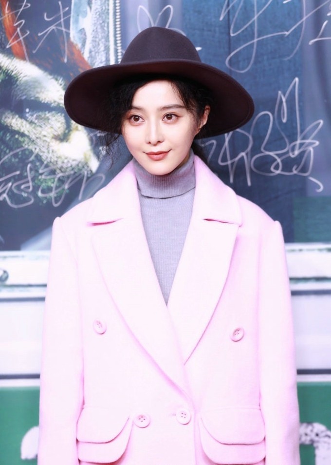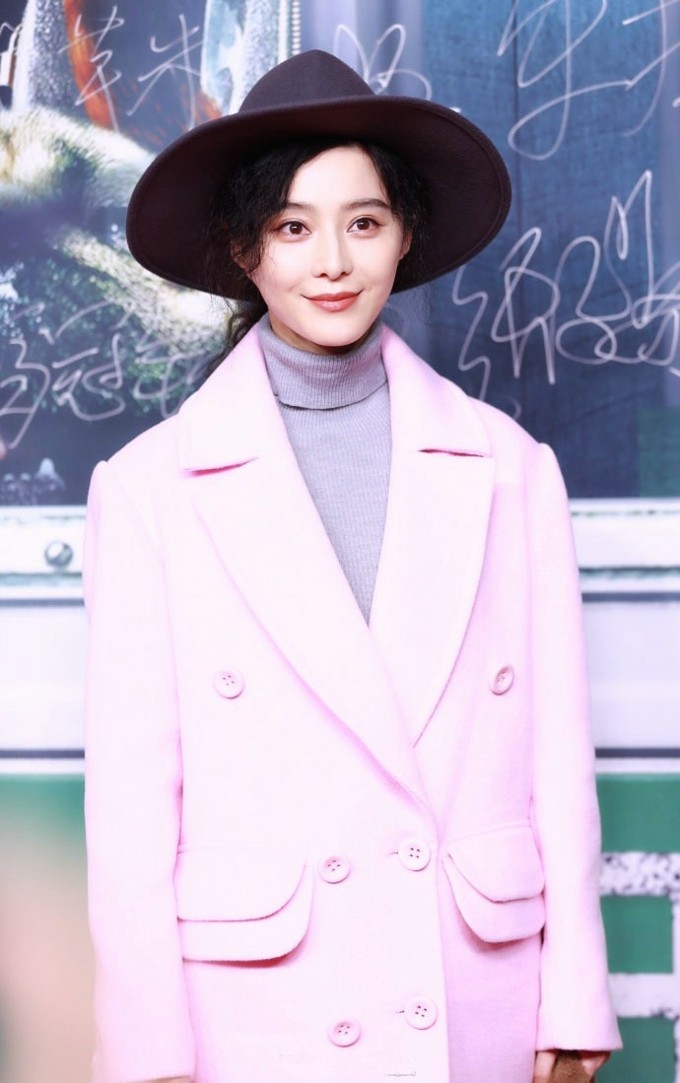 从现场照片看,范冰冰的造型颇为用心。她选择了一件版型宽松的粉色长大衣,内搭灰色高领针织衫,头戴一顶黑色休闲帽。整体搭配在视觉上营造了强烈的“粉嫩感”,减龄效果显著,让她看起来格外年轻。粉色一直是范冰冰偏爱的颜色之一,能很好地衬托其妩媚的女人味。
