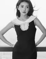 细观这组写真,服装本身便是叙事的开始。连衣裙巧妙融合了白色的纯净蕾丝与黑色裙身的沉稳质感,在视觉上形成了经典而迷人的对比。蕾丝元素赋予了造型细腻柔美的女性气息,而利落的黑色裙身则奠定了优雅大方的基调。这种“淡人”美学——即用简约耐看的单品和基础色系营造高级感,正是梁洁近年来备受推崇的穿搭哲学。她没有选择繁复的设计,却通过面料与剪裁的质感,让整体造型在简约中见层次,于低调中显光华。