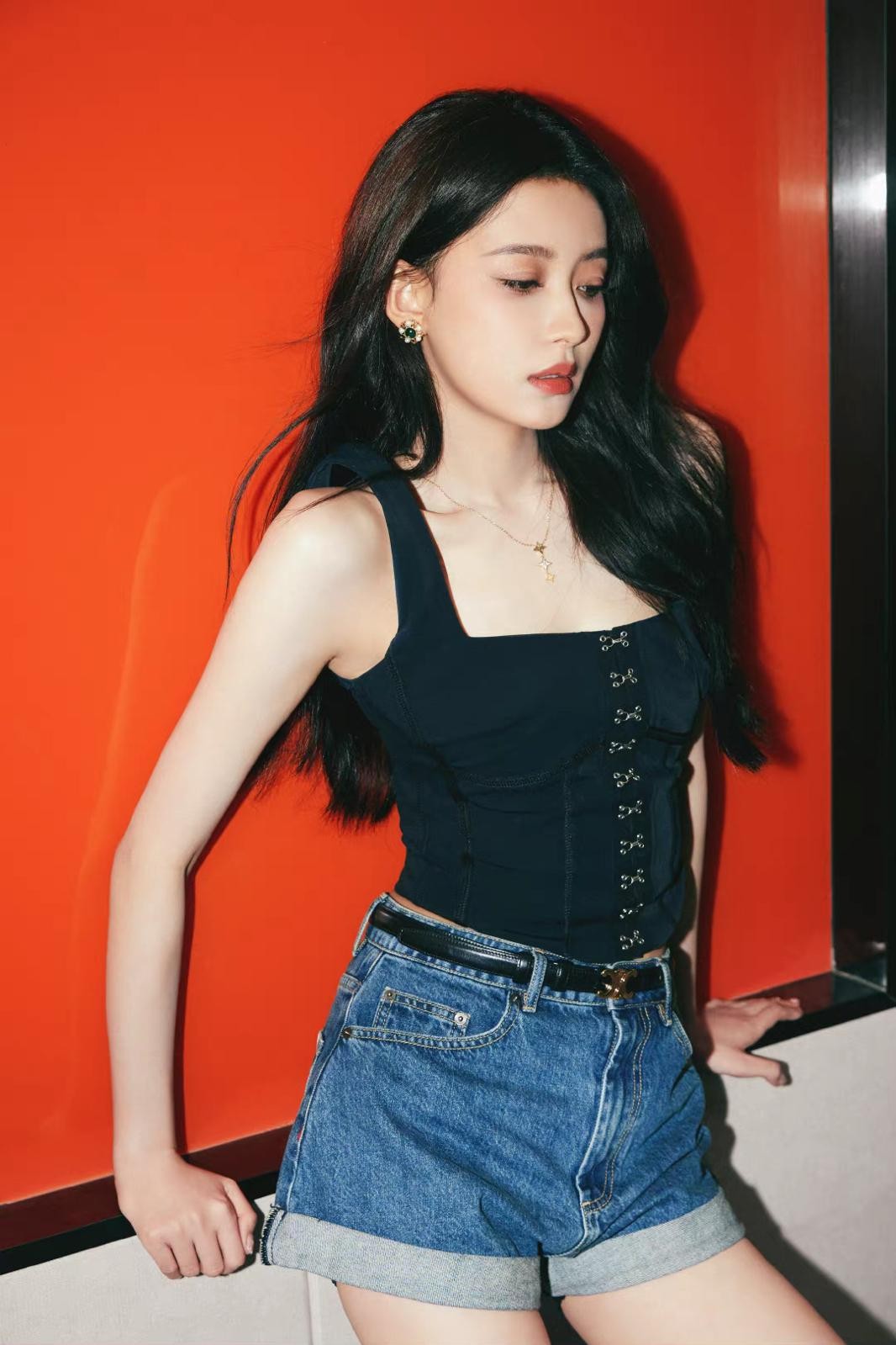在这组写真中,孙怡的造型核心是一件经典的浅蓝色牛仔短裤。牛仔材质自带的休闲与不羁属性,与她自身清新脱俗的气质产生了奇妙的化学反应。牛仔短裤不仅是夏日衣橱的永恒经典,更能最大限度地展现腿部线条。孙怡以之搭配简约的浅色上衣,整体造型干净利落,没有丝毫冗余,将视觉焦点完美集中于她那双笔直修长的美腿之上,诠释了何为“less is more”的高级时尚法则。