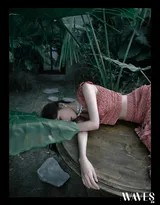 这组写真的高级感,还来源于**人物与环境高度契合所营造的叙事性**。粗粝的树干纹理反衬出肌肤的细腻,庭院草地的斑驳绿意与裙装的墨绿交织,构成一幅和谐而充满呼吸感的画面。蔡文静无需直视镜头展露笑容,仅是一个微微侧首望向远方的瞬间,眼尾那一抹轻垂的神情,便足以让人感知到一种沉淀后的情绪,宛如风吹树叶留下的细微声响,伤感而诗意。这种将自身融入环境,让环境成为情绪延伸的能力,体现了她作为演员的镜头表现力,也让静态的写真充满了动态的故事感。