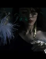 写真的核心魅力,在于蔡文静完美融合了**氛围感与骨相之美**。丝绒面料独有的复古光泽,柔和地衬托出她优越的肩颈与锁骨线条,如同被自然光亲吻。她没有刻意摆出冷艳姿态,而是将双手轻背身后,或随意倚靠树干,裙摆自然垂落。这种毫不费力的姿态,恰恰是“松弛感”的最佳注解——一种内在自信的外化,不讨好,不张扬,却自带吸引目光的磁场。镜头推近,她发丝轻垂,眼眸低垂时流转着一丝漫不经心的温柔,连手中作为道具的向日葵,也褪去了明媚,染上了一层淡如林间薄雾的忧伤,引人探寻其眉眼深处未言说的故事。